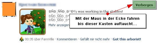 10. Wenn Du auf der Startseite irgendwelche News/Infos nicht haben willst. Mit der Maus rechts oben im Eck herumirren, bis das Feld “Verbergen” erscheint. Nun kannst Du einfach die blöde Application verbergen.