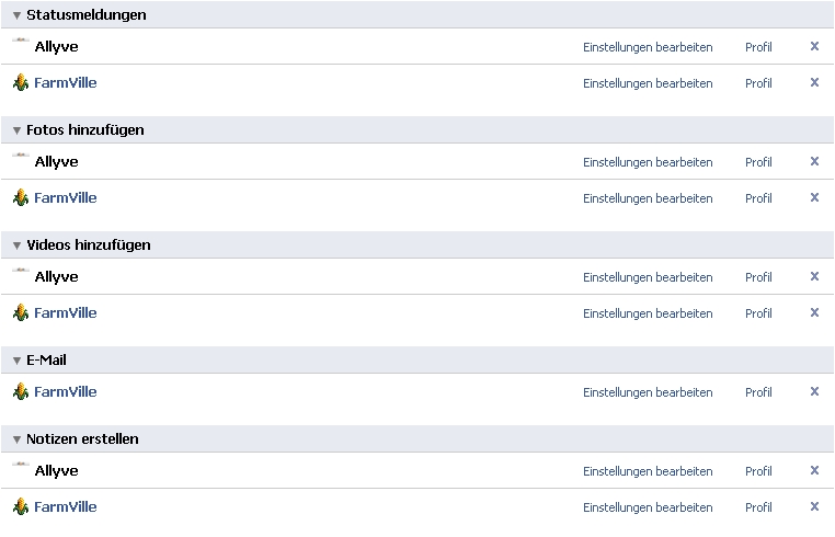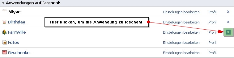 4. Jede Anwendung kannst Du aus Deiner "autorisierten Liste" wieder löschen - einfach auf "x" klicken (hinten)