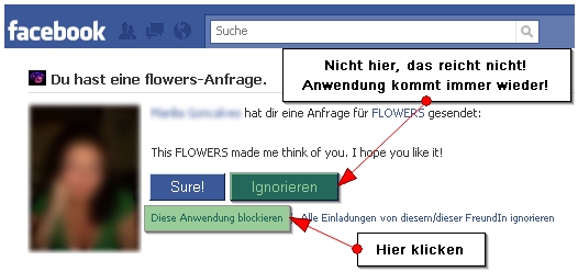 7. Auf der "Anfragen Seite" muss man jetzt jede Anwendung, die man nicht will "Diese Anwendung blockieren" anklicken